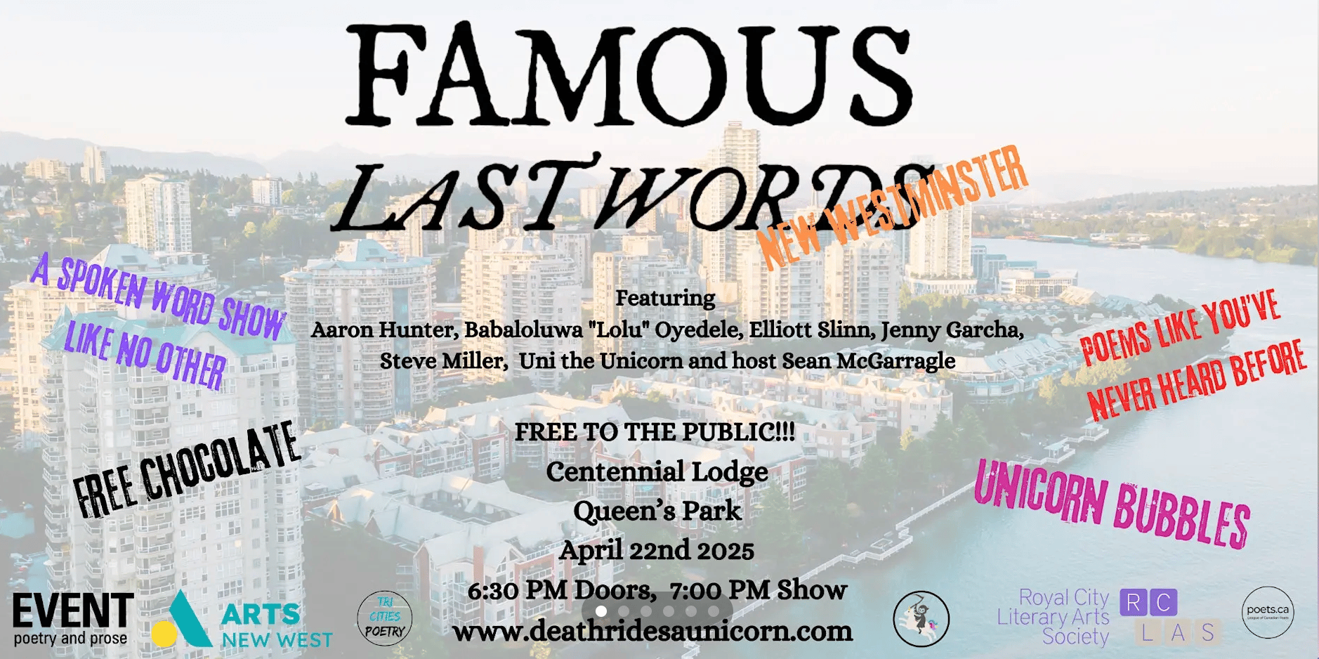 The lineup includes a mix of talented local and regional artists, including New Westminsterโs own Poet Laureate Elliott Slinn, alongside other accomplished performers.