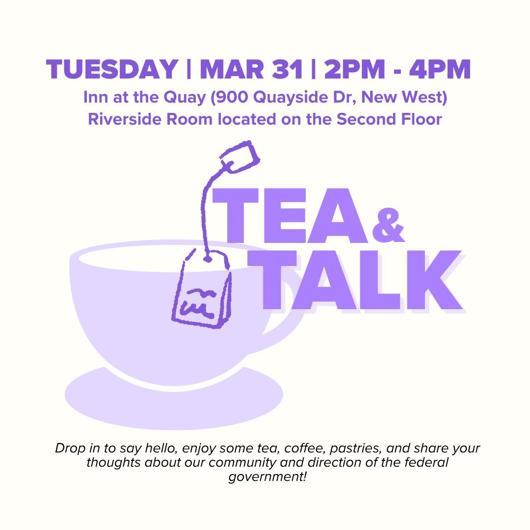 ๐ซ Tea & Talk With MP Jake Sawaksky - Inn at the Quay 2:00 PM to 4:00 PM