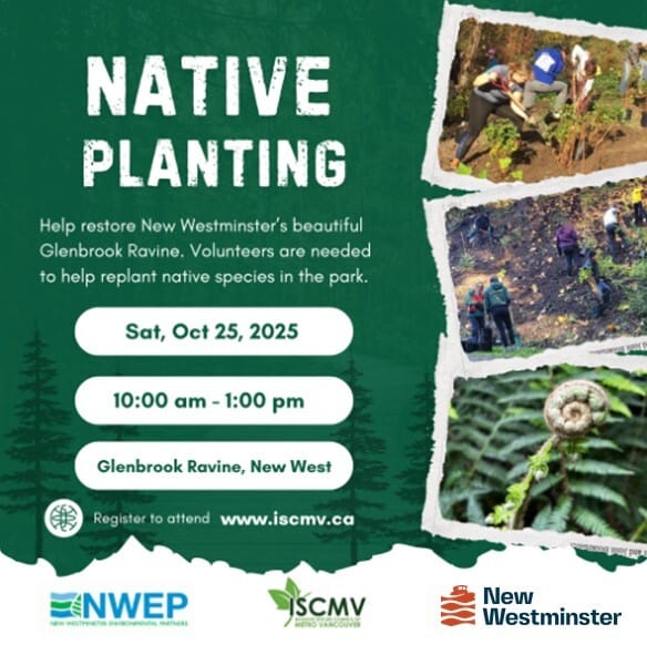 This planting event is completely free and open to everyone — you don’t need to live in New Westminster to join. Plus, there are five Glenbrook Ravine planting dates this year, so it’s a great opportunity to stay involved in ongoing restoration efforts.
