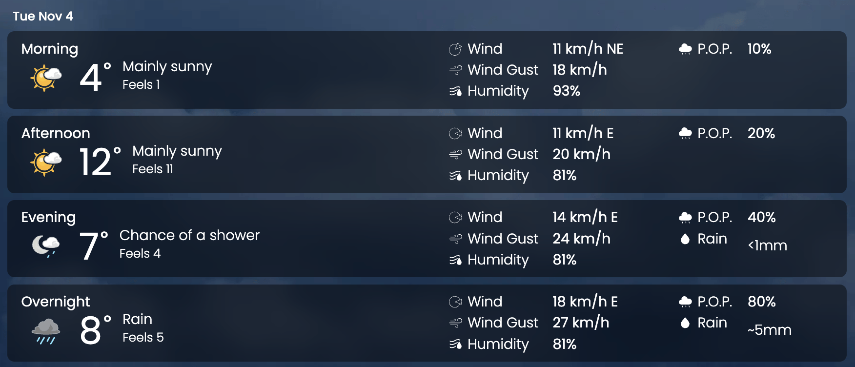 Historical Records for Today - Record high 18.0 2023 - Record low -2.1 2017