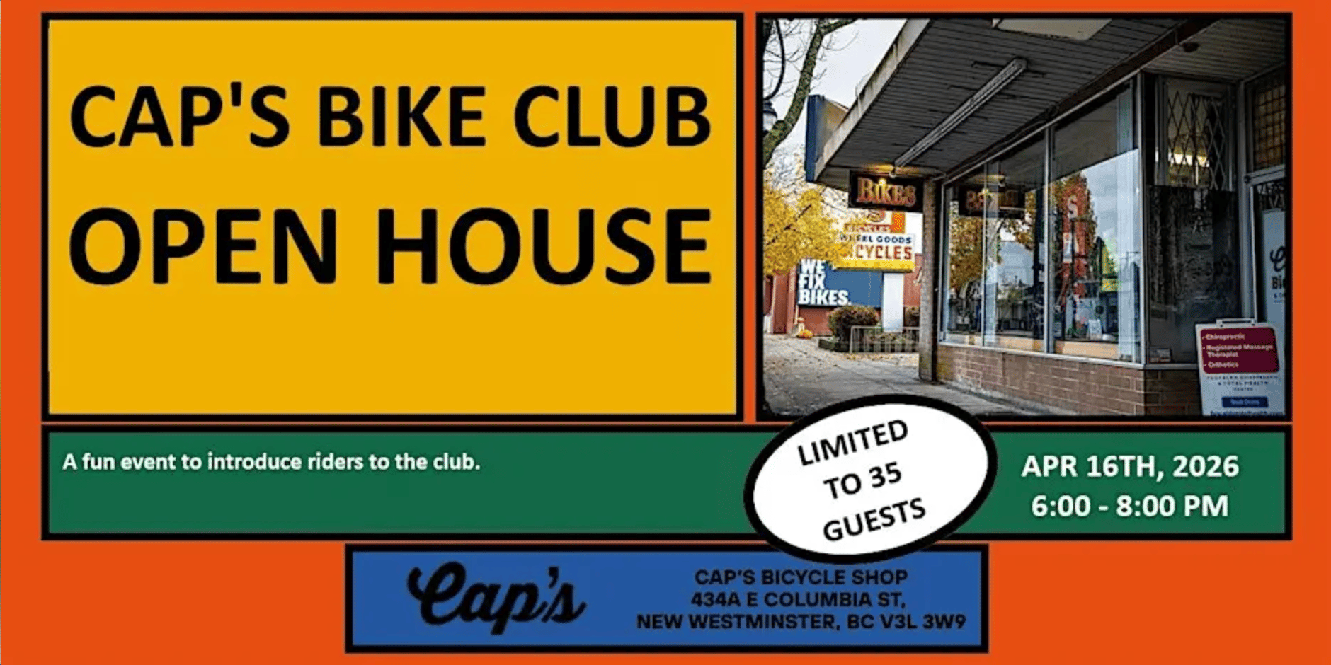 Cycling season is here, and Capβs Bicycle Shop in New Westminster is inviting riders to kick things off at their upcoming Bike Club Open House on Thursday, April 16 from 6:00 to 8:00 p.m.