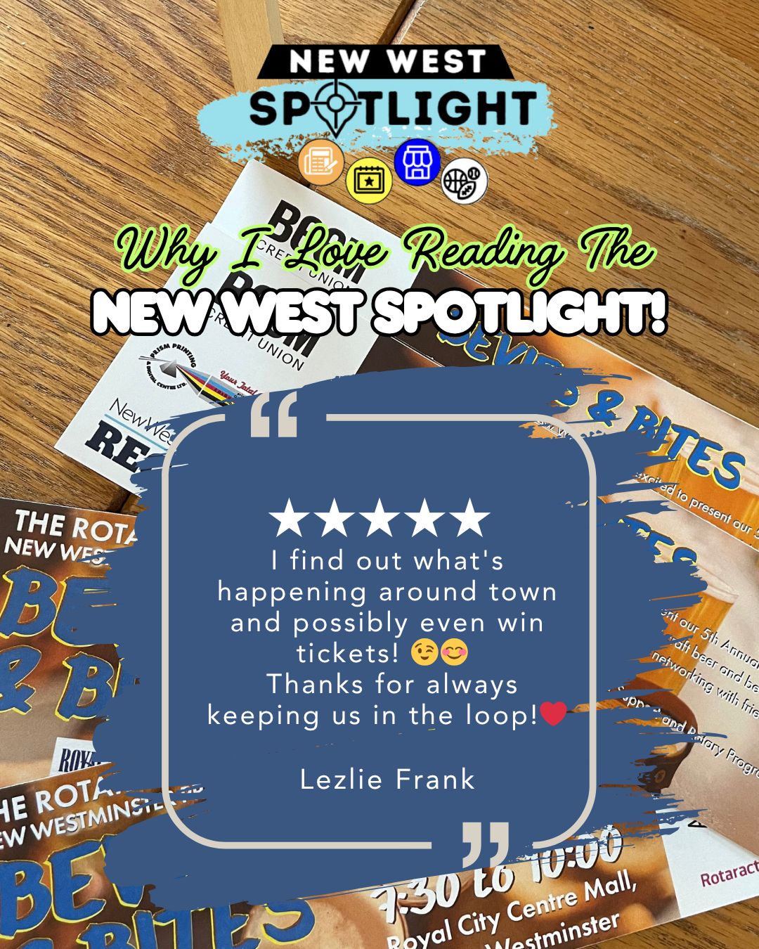 What’s faster than word of mouth? New West Spotlight! It keeps you updated on what is happening locally and connects businesses to our vibrant community.